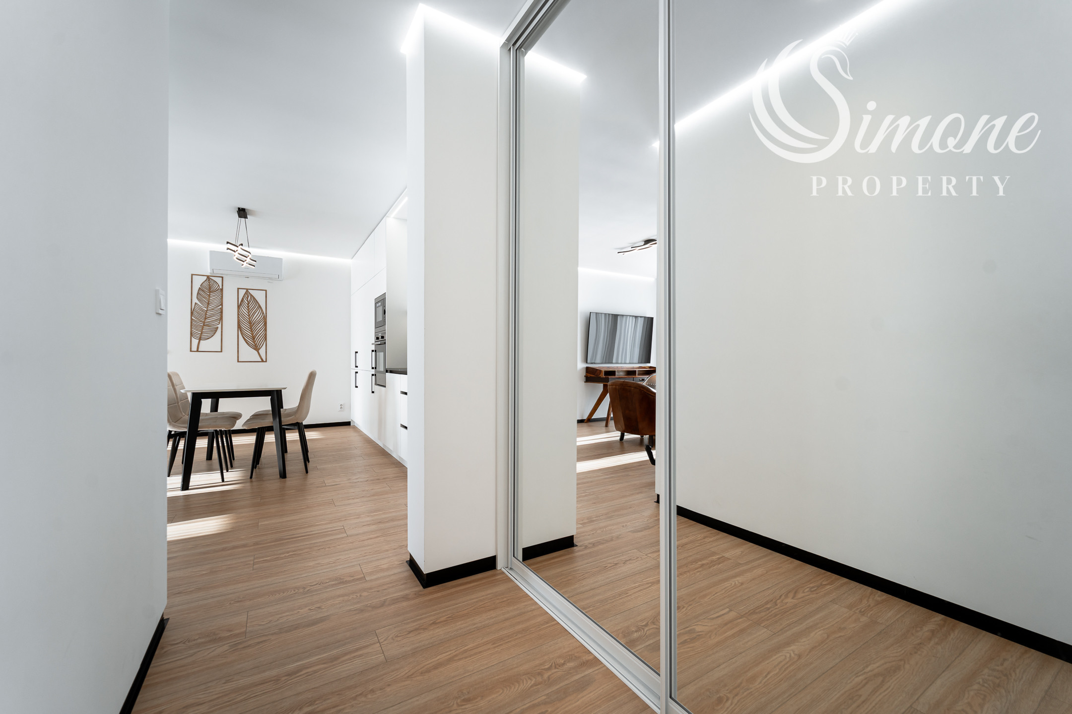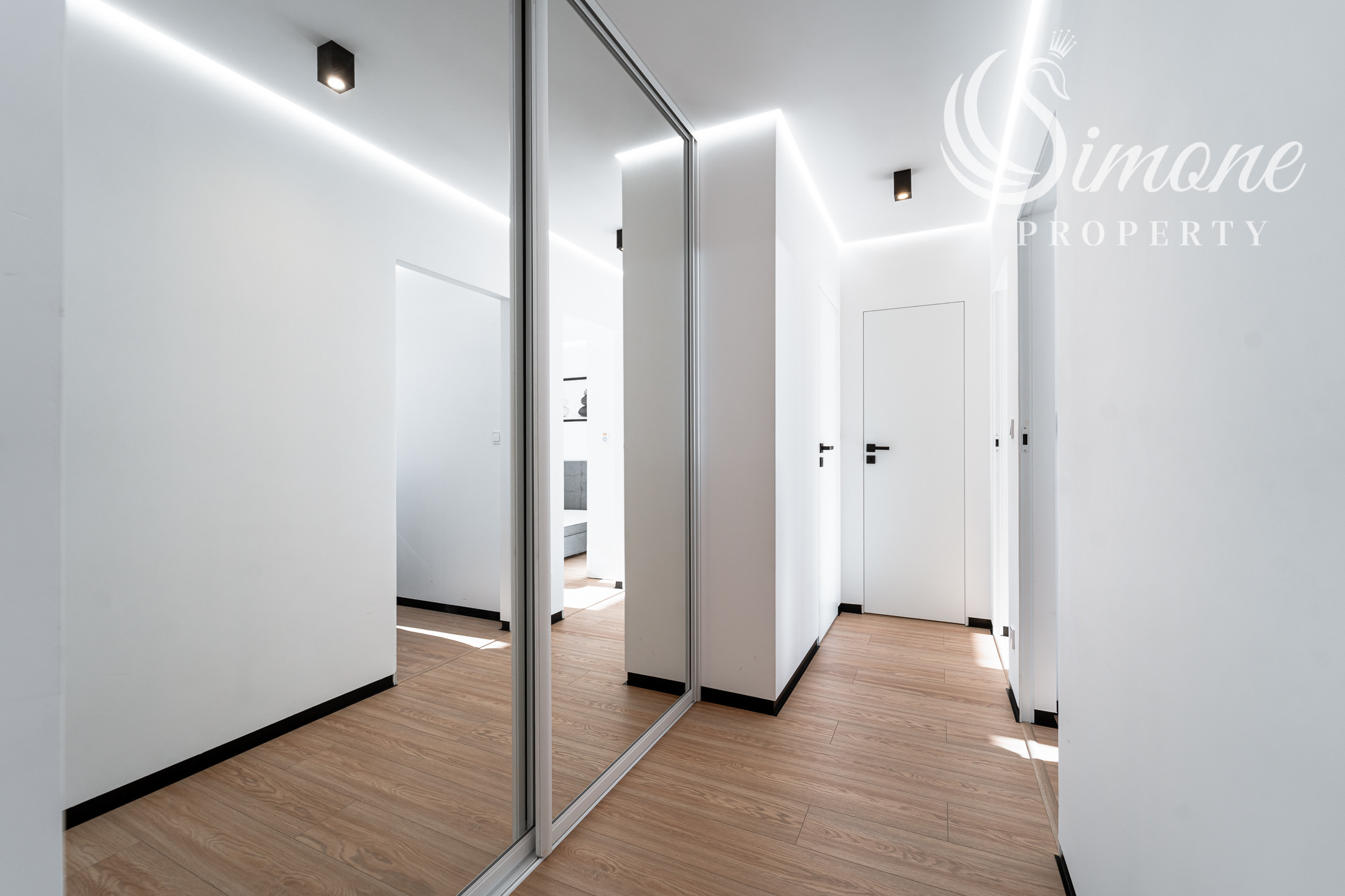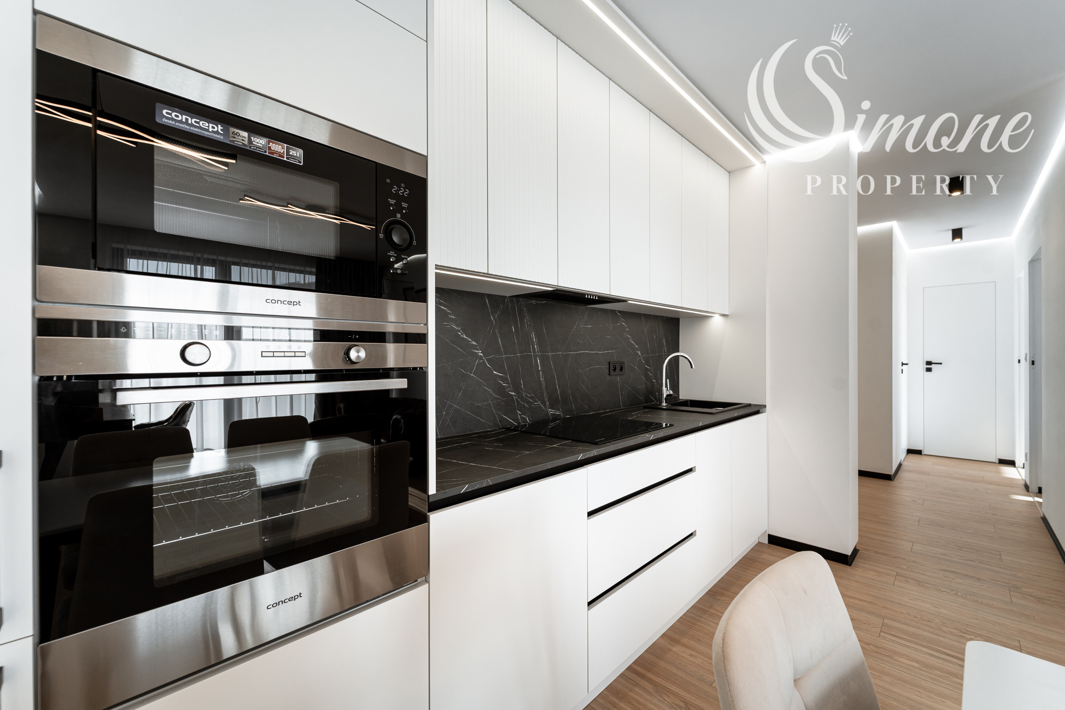 - predsieň, obývacia izba prepojená s kuchyňou, 2x spálňa, chodba, kúpeľňa, WC, balkón.Interiér bytu bol navrhnutý dizajnérom v štýle "Contemporary" s dôrazom na eleganciu, modernú funkcionalitu a nadštandardné vyhotovenie.