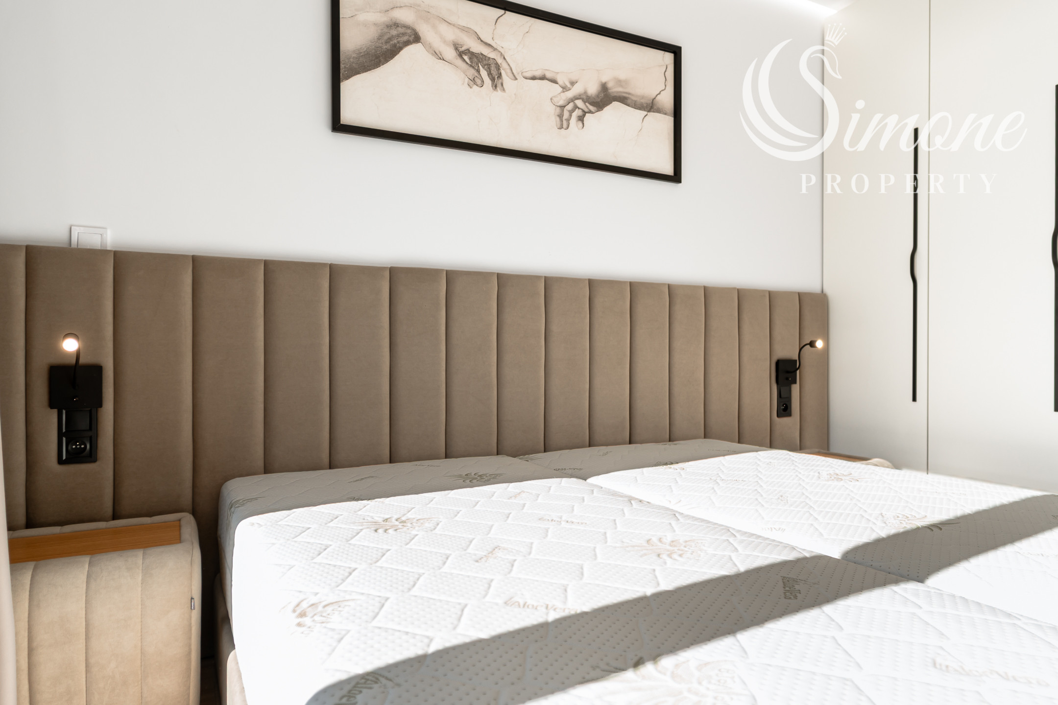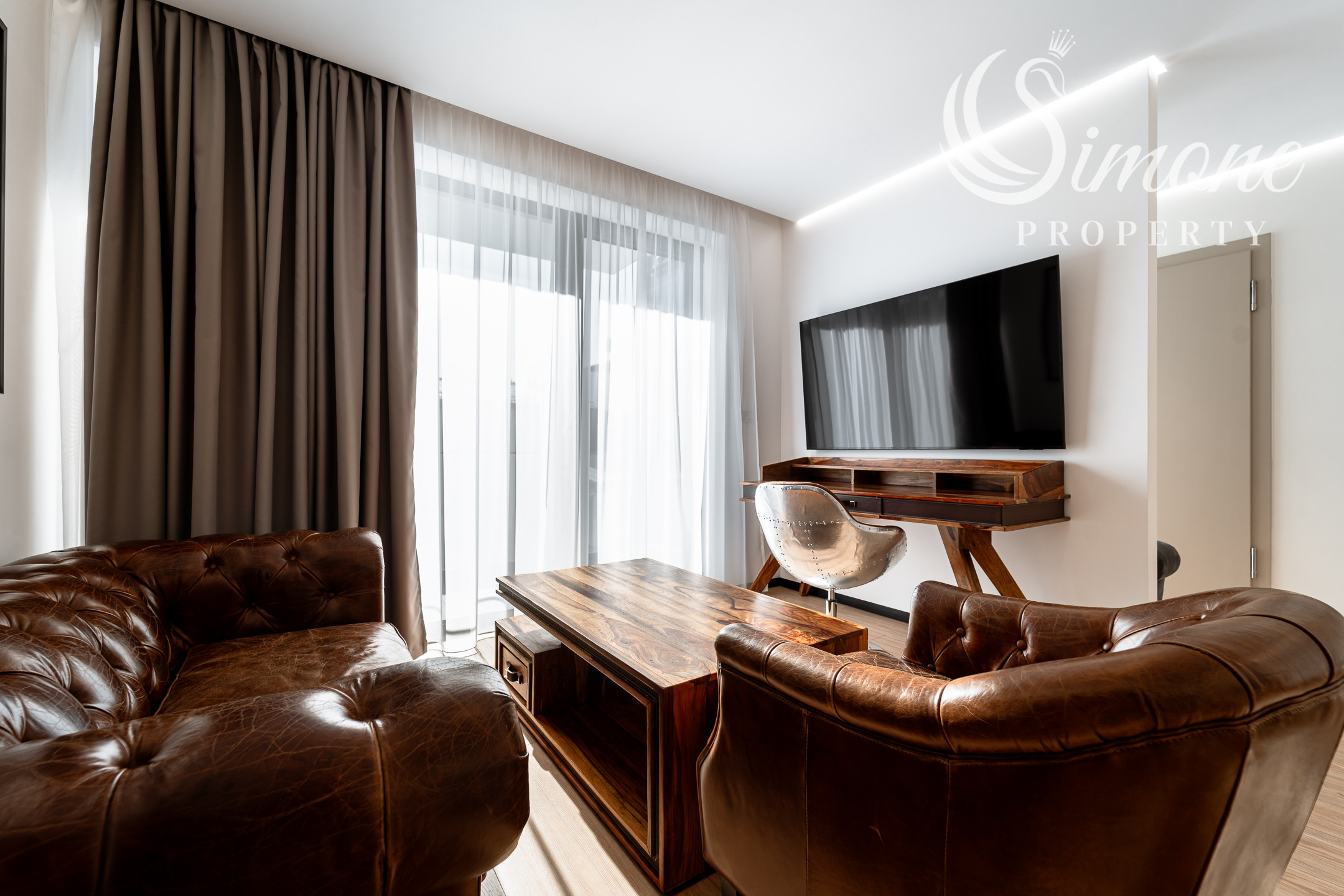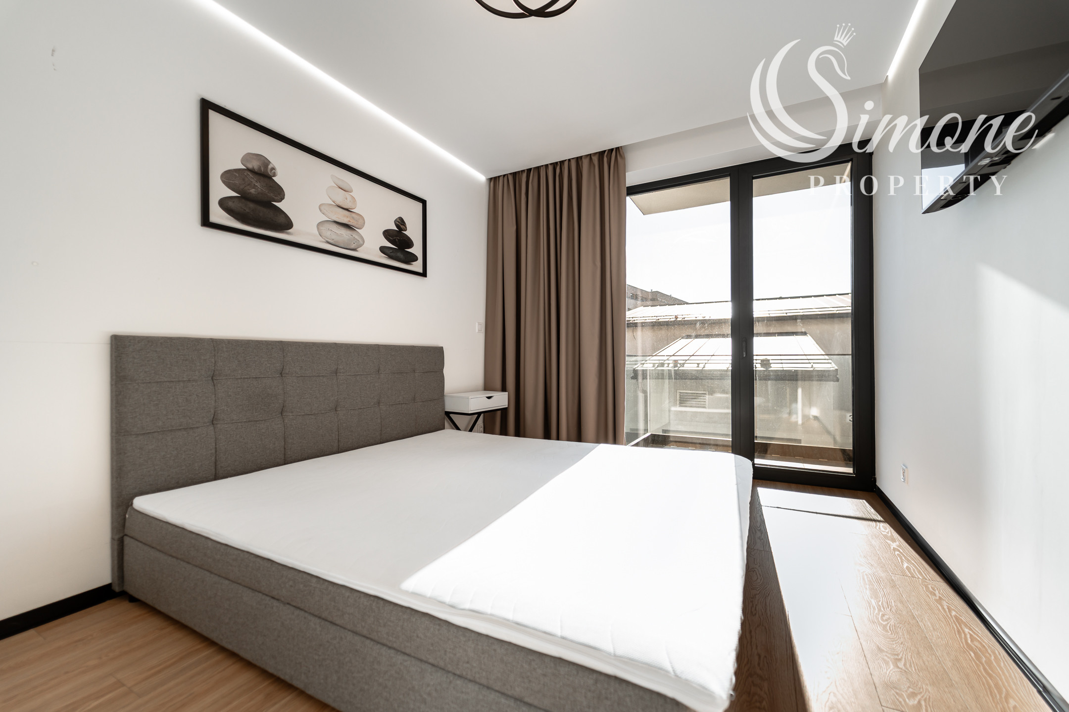 - predsieň, obývacia izba prepojená s kuchyňou, 2x spálňa, chodba, kúpeľňa, WC, balkón.Interiér bytu bol navrhnutý dizajnérom v štýle "Contemporary" s dôrazom na eleganciu, modernú funkcionalitu a nadštandardné vyhotovenie.