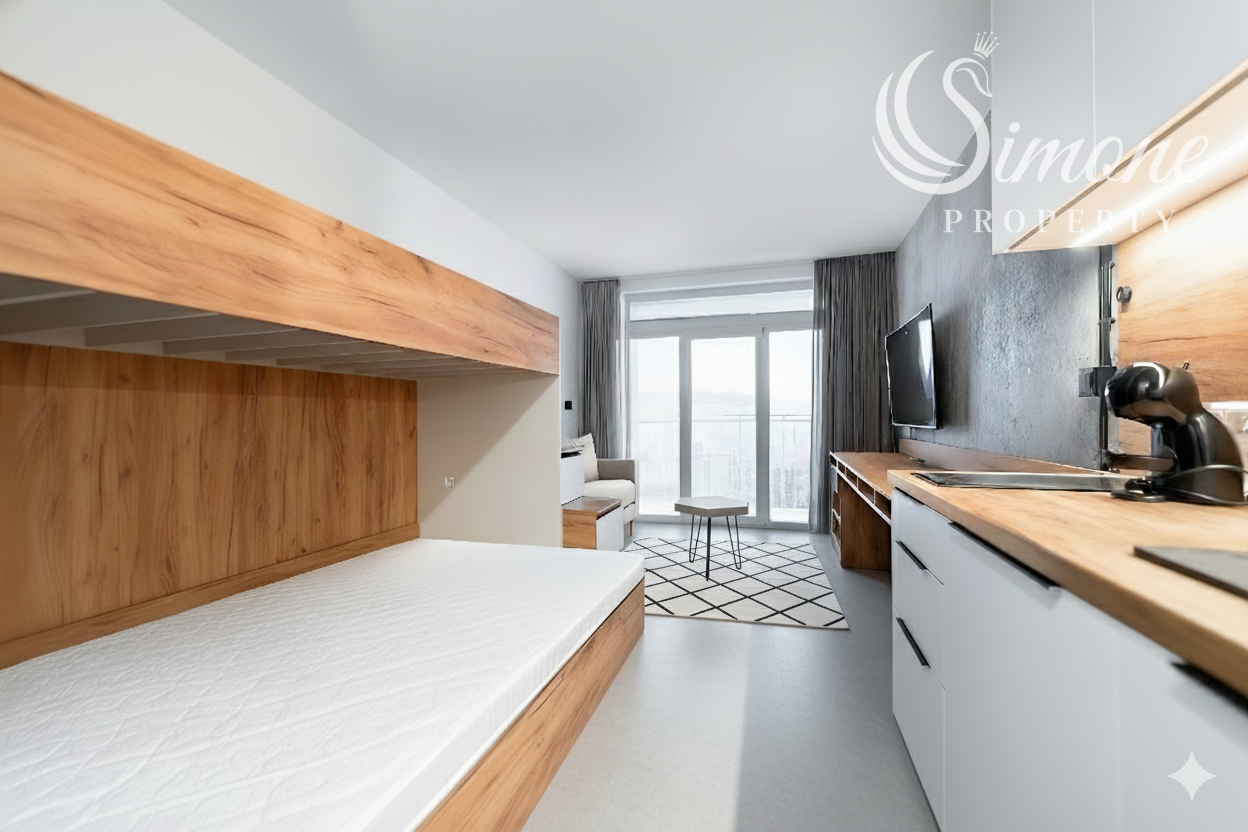 We exclusively offer you a unique opportunity to live in a completely designer furnished apartment with a balcony in the popular new building Kosmalt in Košice, on Kysucká ul., KE – Západ.