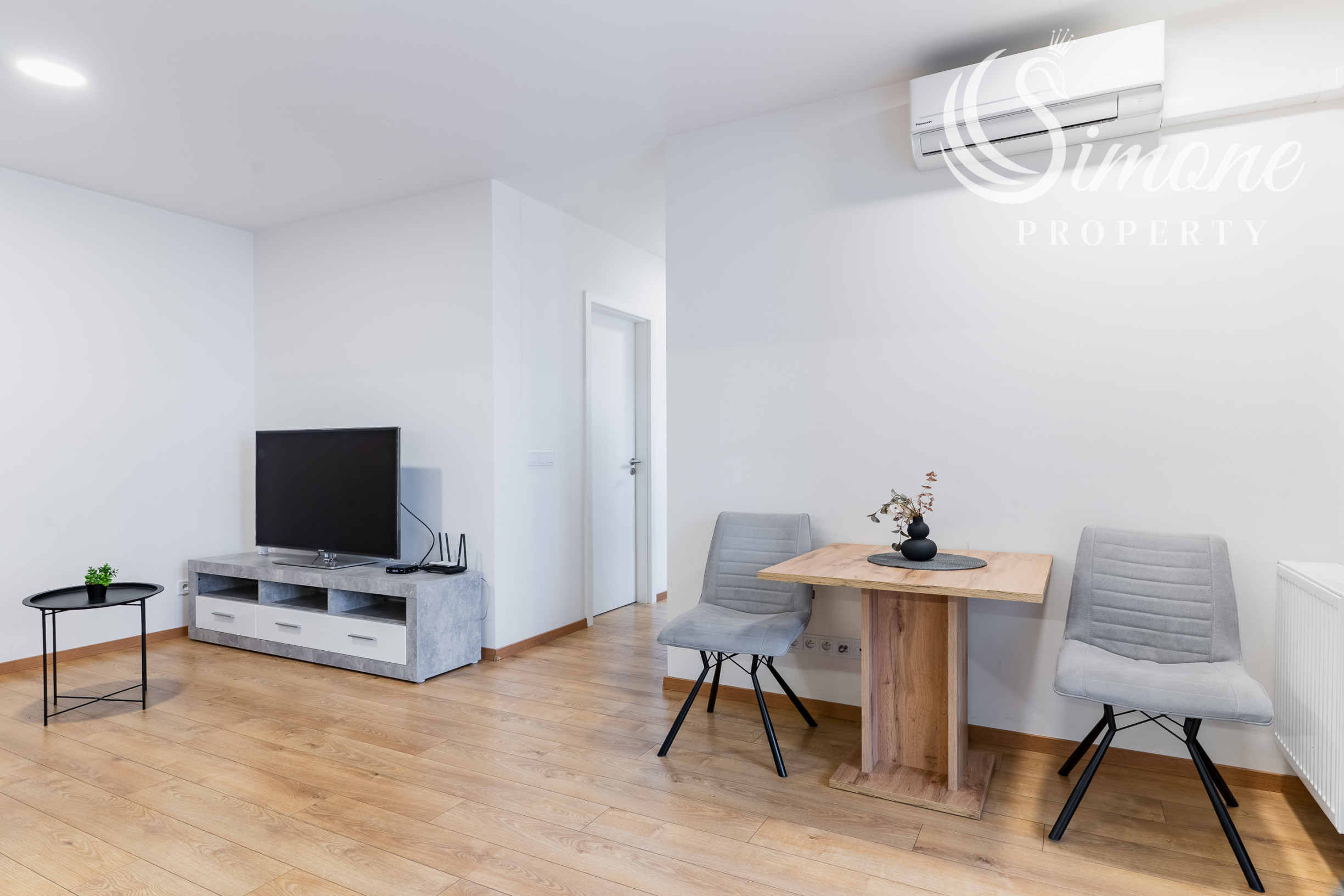 Nádherný byt s priestranným 10 m2 balkónom vám ponúka úplne všetko, čo k bezstarostnému životu potrebujete. Celý byt je zariadený kvalitnými spotrebičmi a všetkým potrebným nábytkom, aby ste mohli od prvého dňa bez starostí bývať. Hneď pri vstupe pocítite, že byt bol zariadený tak, aby ste sa v ňom nielen výborne cítili, ale aby ste mali k dispozícii všetko čo je v domácnosti potrebné. V byte je osadená aj klimatizácia.