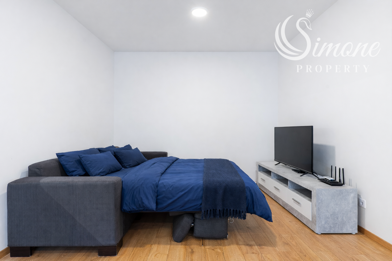 Poschodie: 5. poschodieByt je inteligentne zariadený tak, aby maximalizoval priestor. Hoci ide o 1-izbový byt, o kvalitu spánku neprídete. V obývacej časti sa nachádza kvalitná rozkladacia sedačka s integrovaným plnohodnotným matracom, ktorá po rozložení slúži ako klasická manželská posteľ.