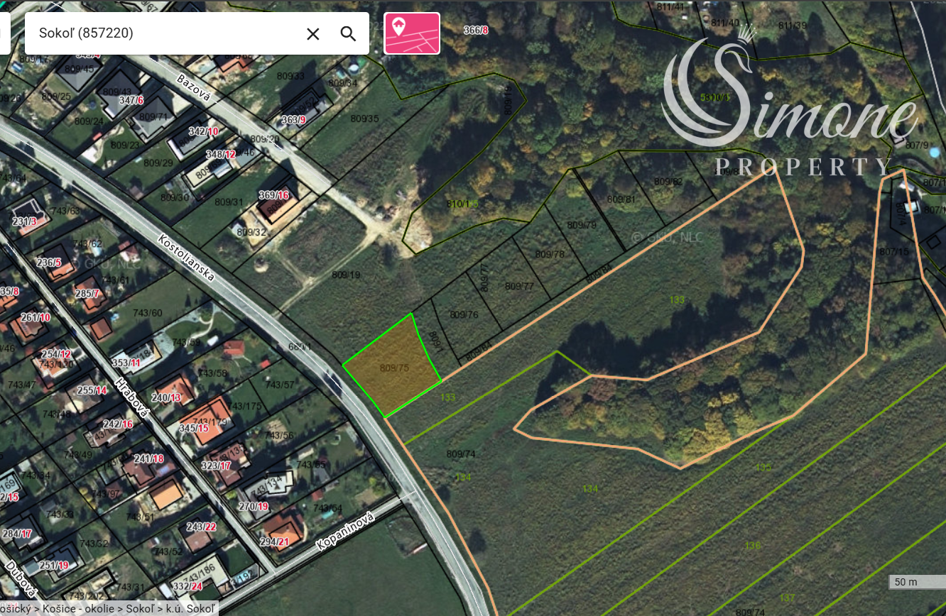 - Parcelné číslo: 809/75 (registra "C").