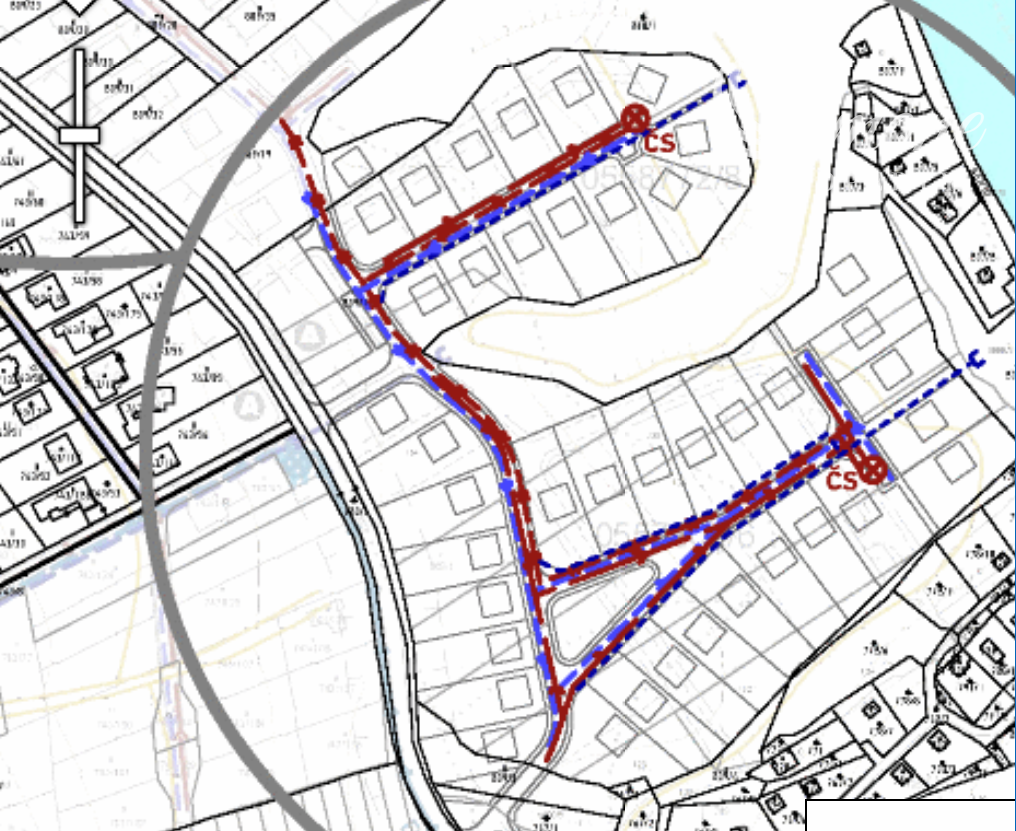 - Elektrina a Plyn: V blízkosti je navrhovaná nová trafostanica (TS) a STL plynovod DN100.