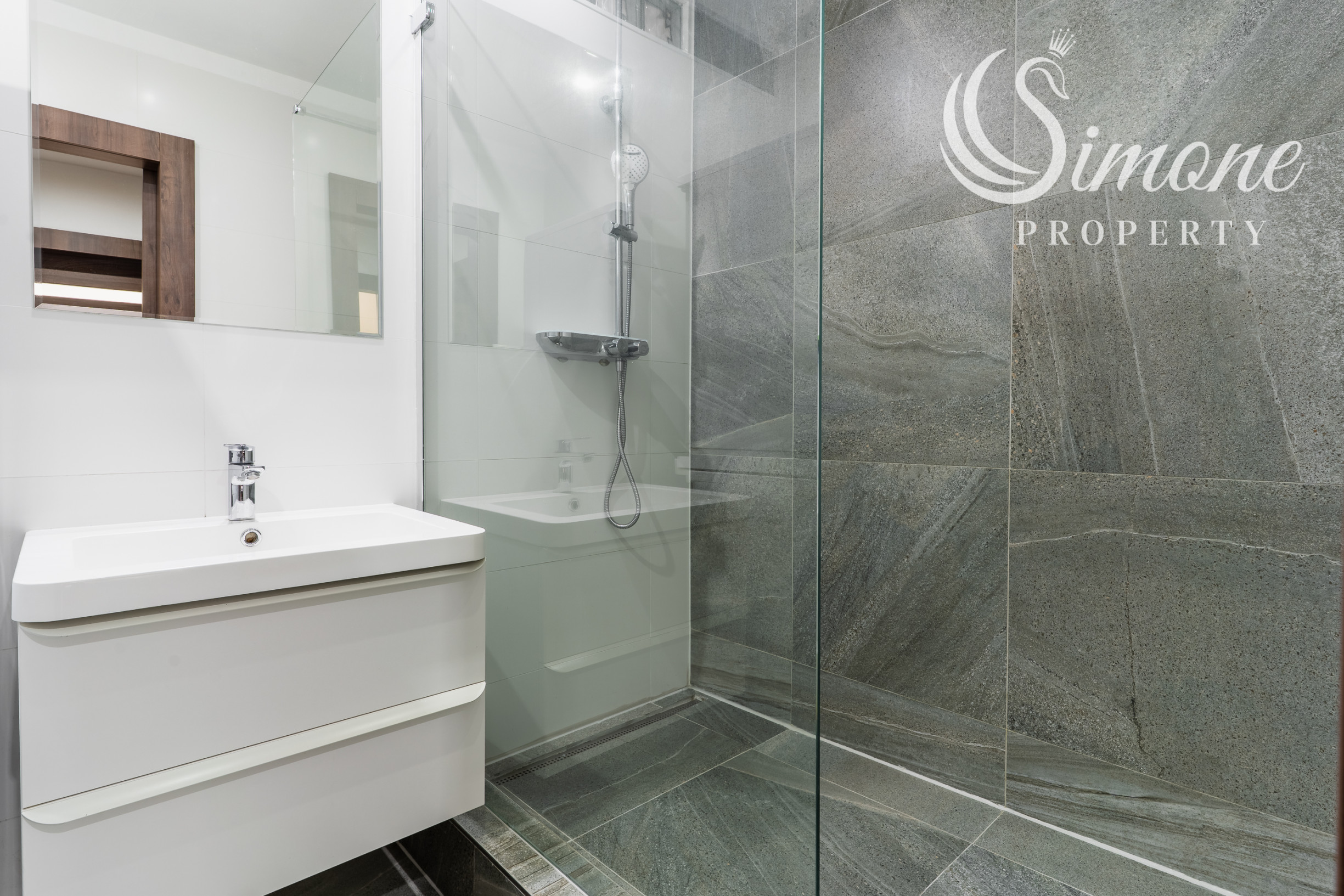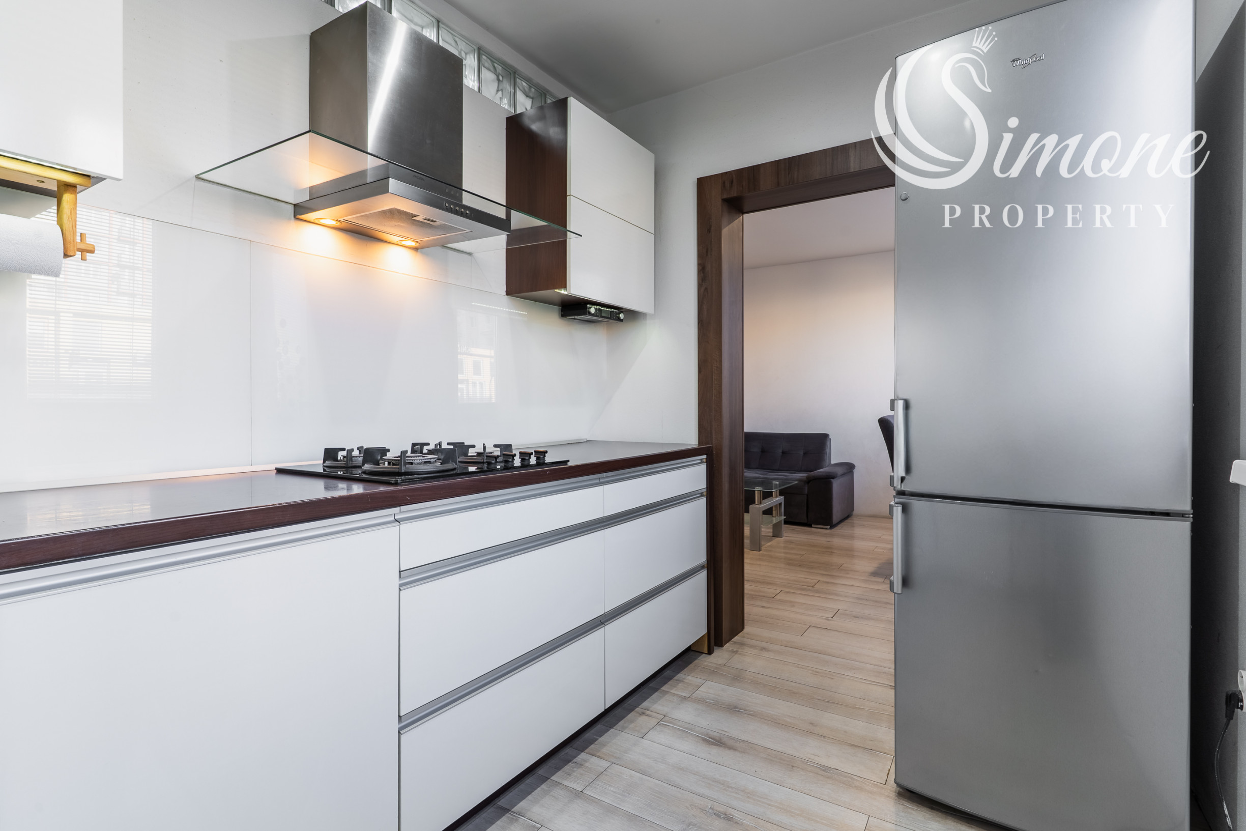 Dispozícia bytu bola navrhnutá tak, aby spájala funkčnosť a komfort každodenného života. Po vstupe Vás privíta priestranná vstupná chodba s bezpečnostnými vchodovými dverami a so vstavanou skriňou. Po pravej strane je situovaná kúpeľňa s veľkým murovaným sprchovacím kútom a oddelené WC, ktoré zvyšuje praktickosť každodenného fungovania. Izba a Spálňa s loggiou a veľkou vstavanou skriňou po celej dĺžke izby sú príjemne oddelené od dennej časti bytu a sú orientované na SV s výhľadom do tichej časti plnej zelene. Obývačka s kuchyňou, ktorá je kompletne vybavená spotrebičmi vrátane umývačky riadu sú orientované na JZ.
