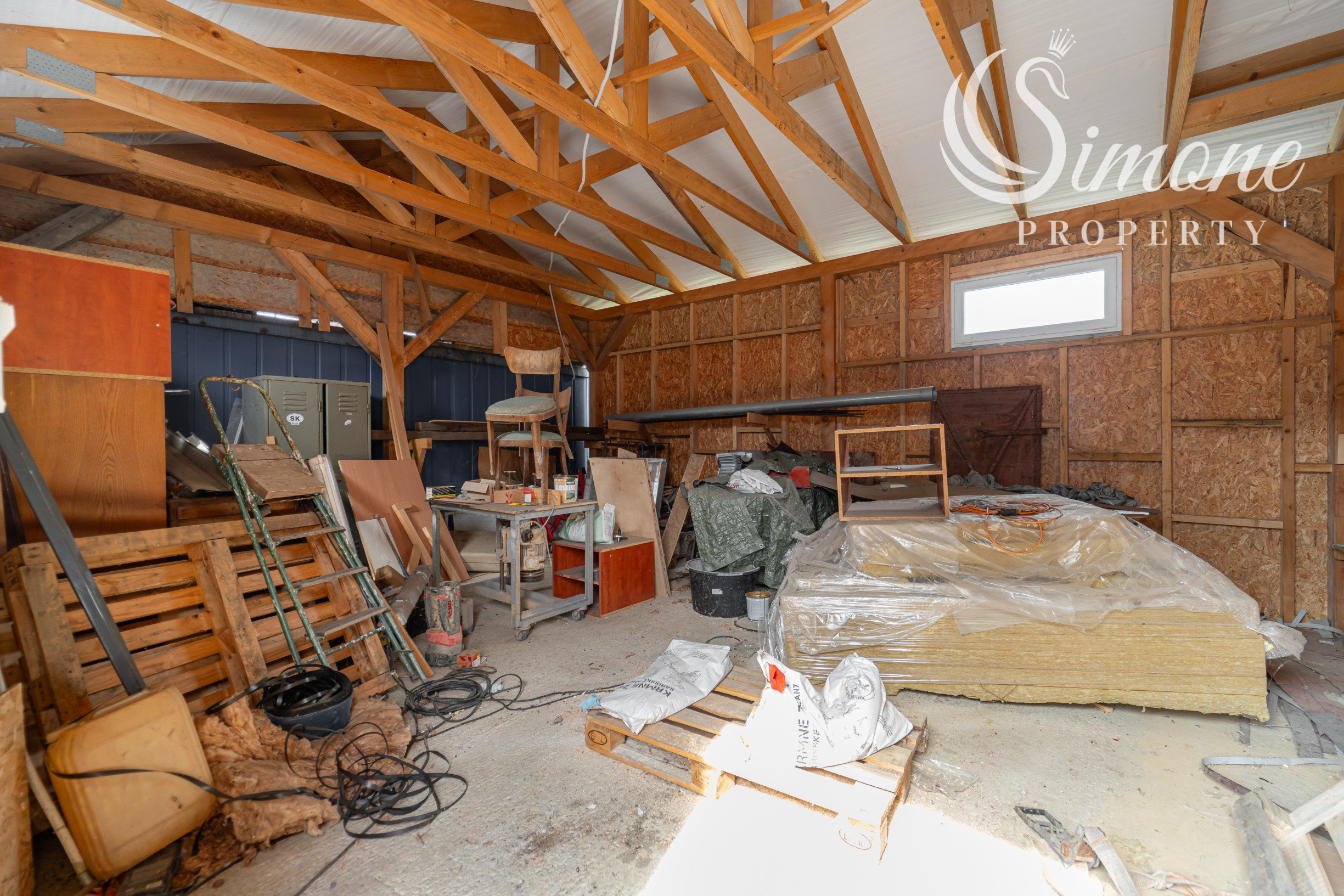 - Kvalitný väzníkový krov a plechová krytina.
