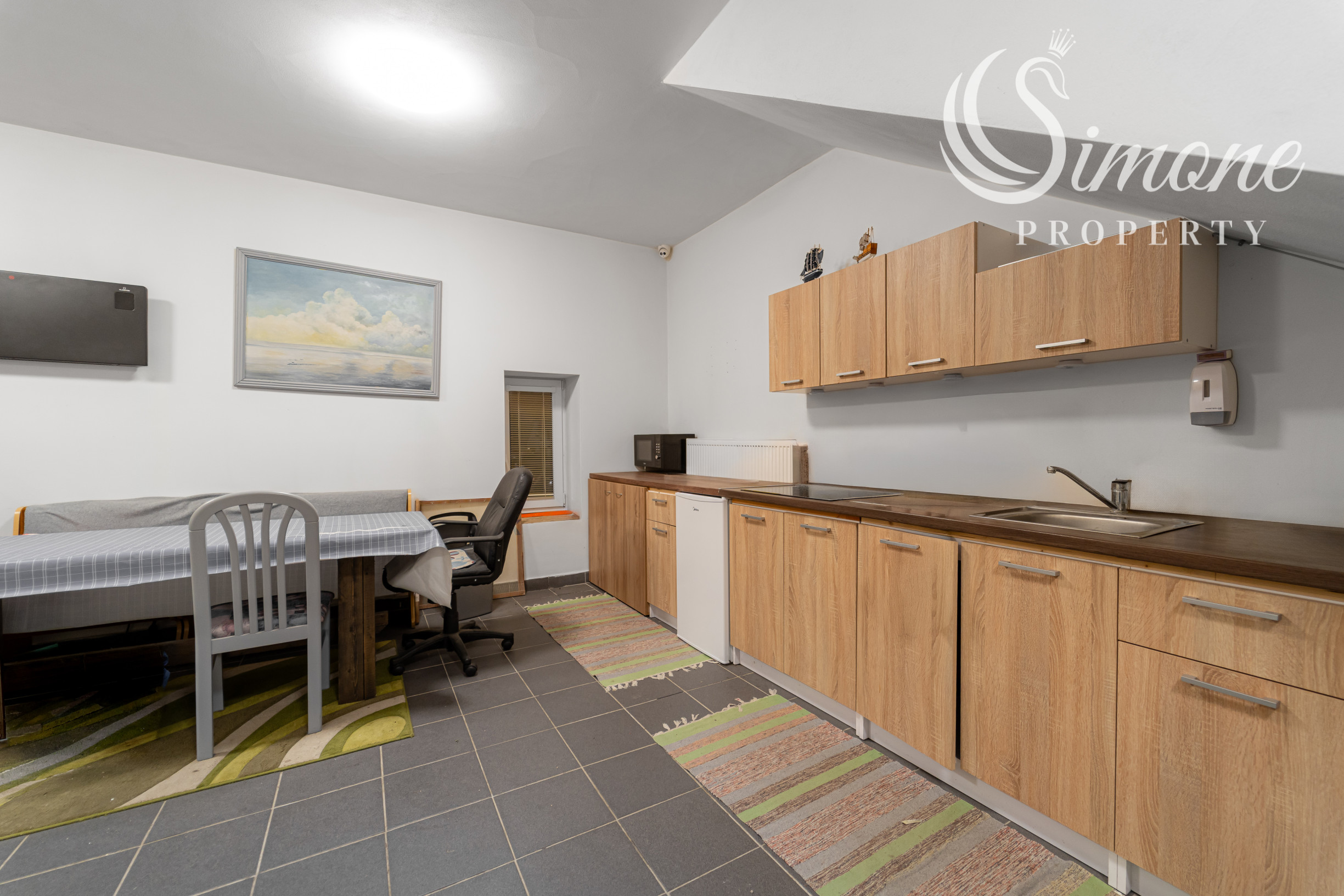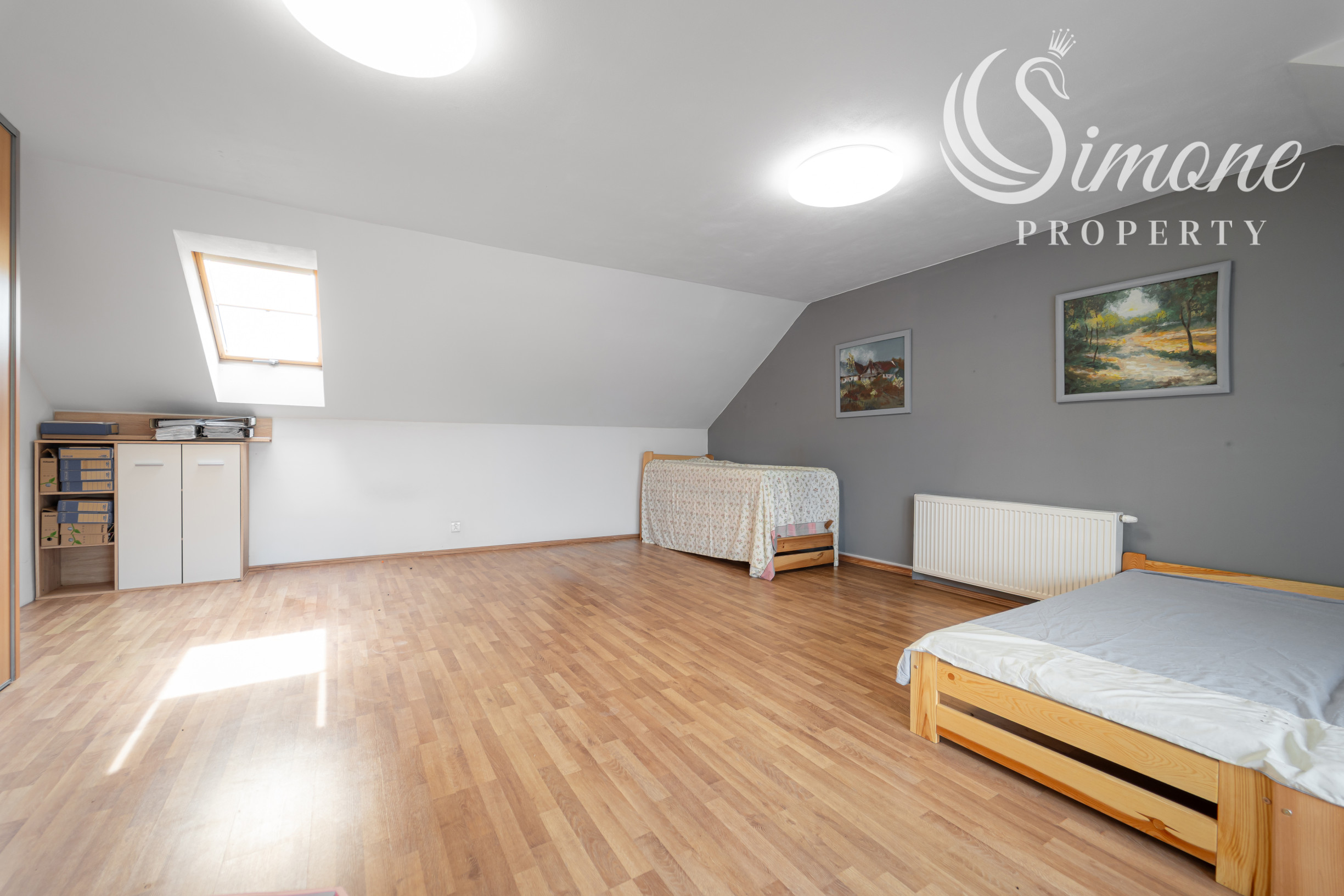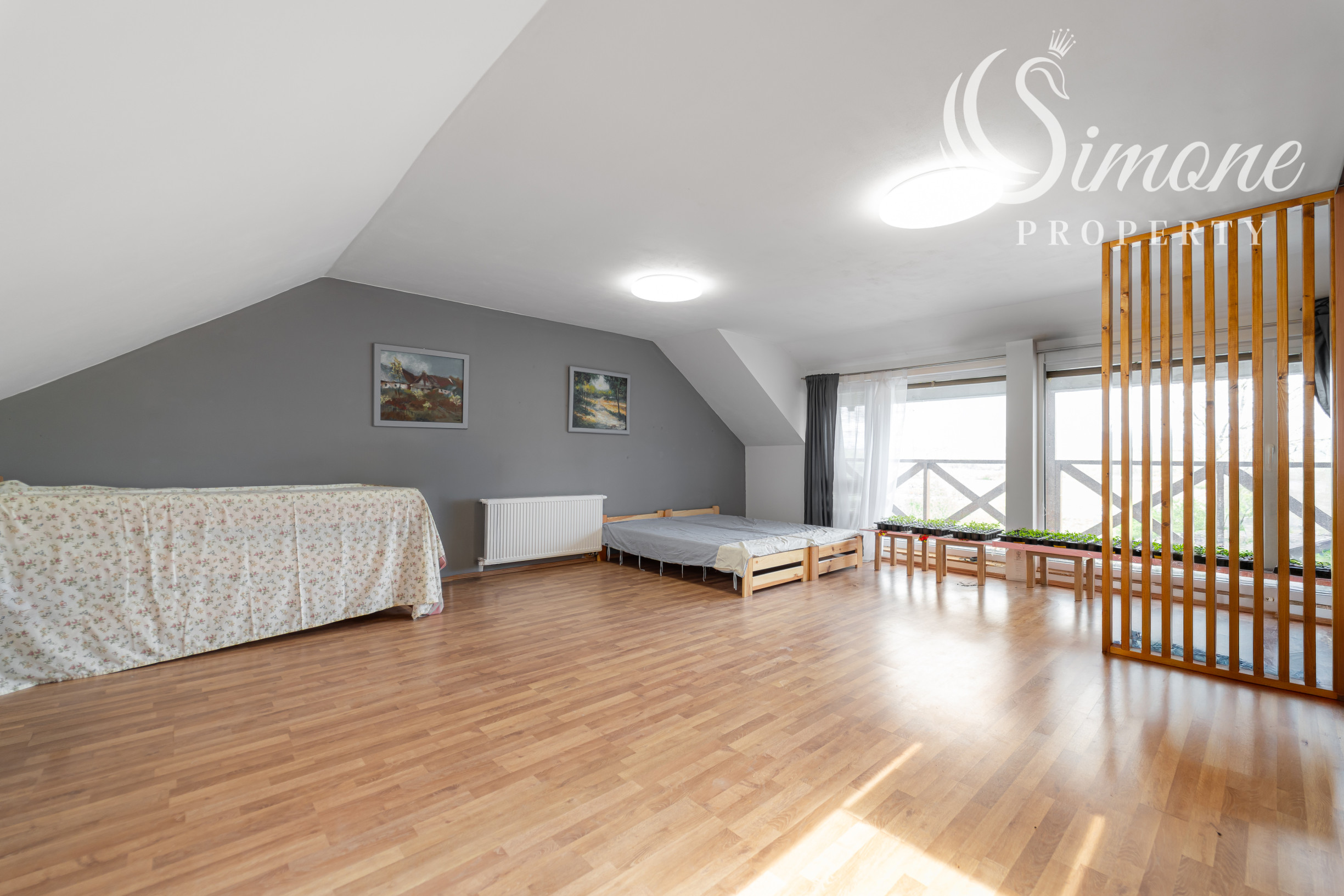 - Podkrovie: Priestranná kancelária, kuchynka, WC a balkón.