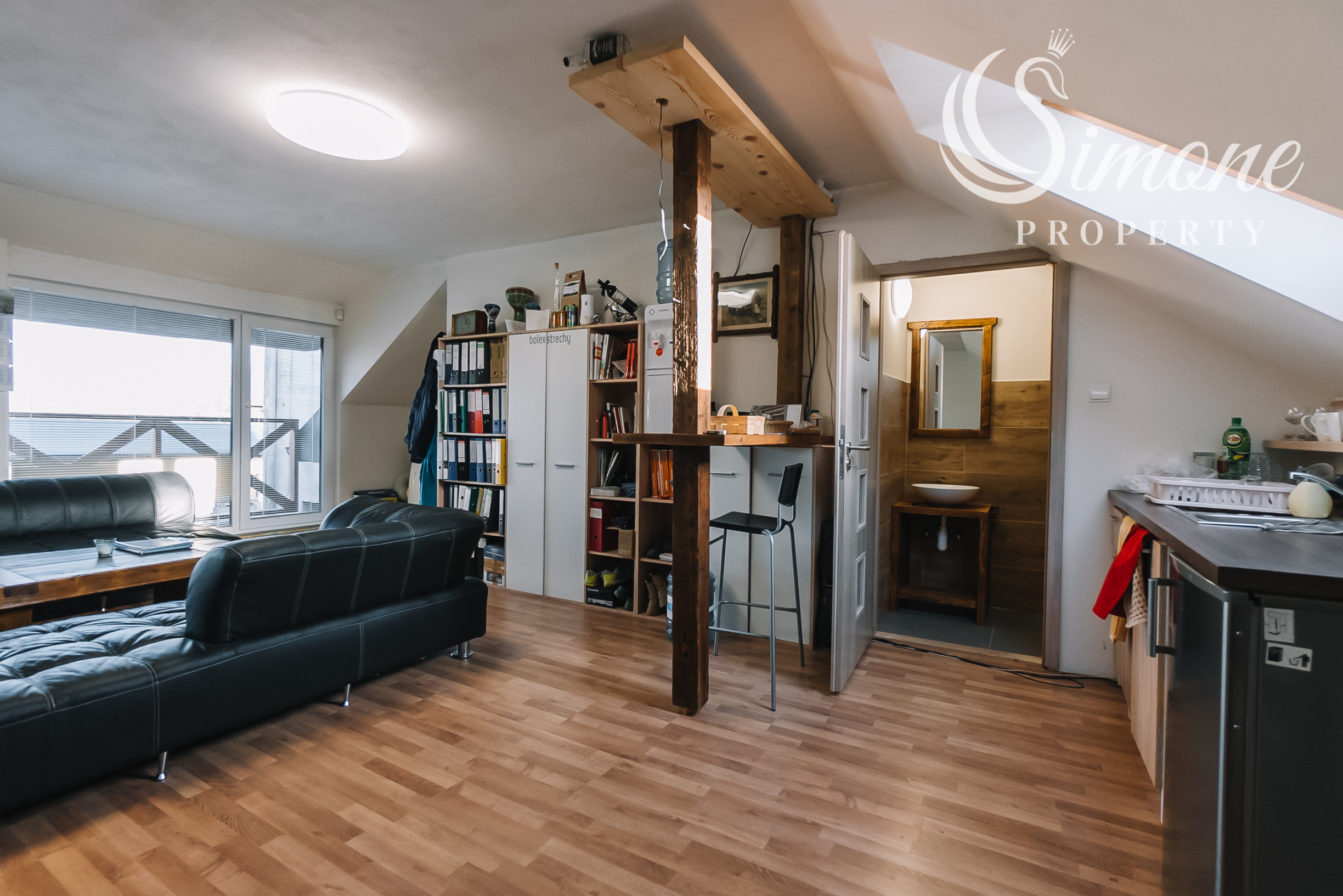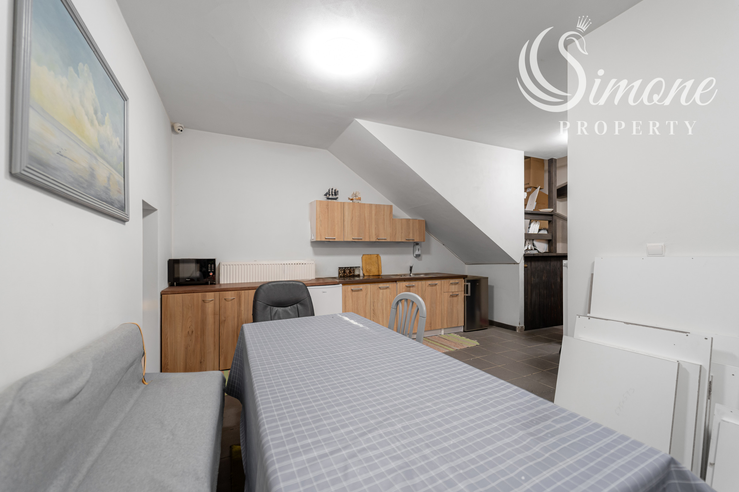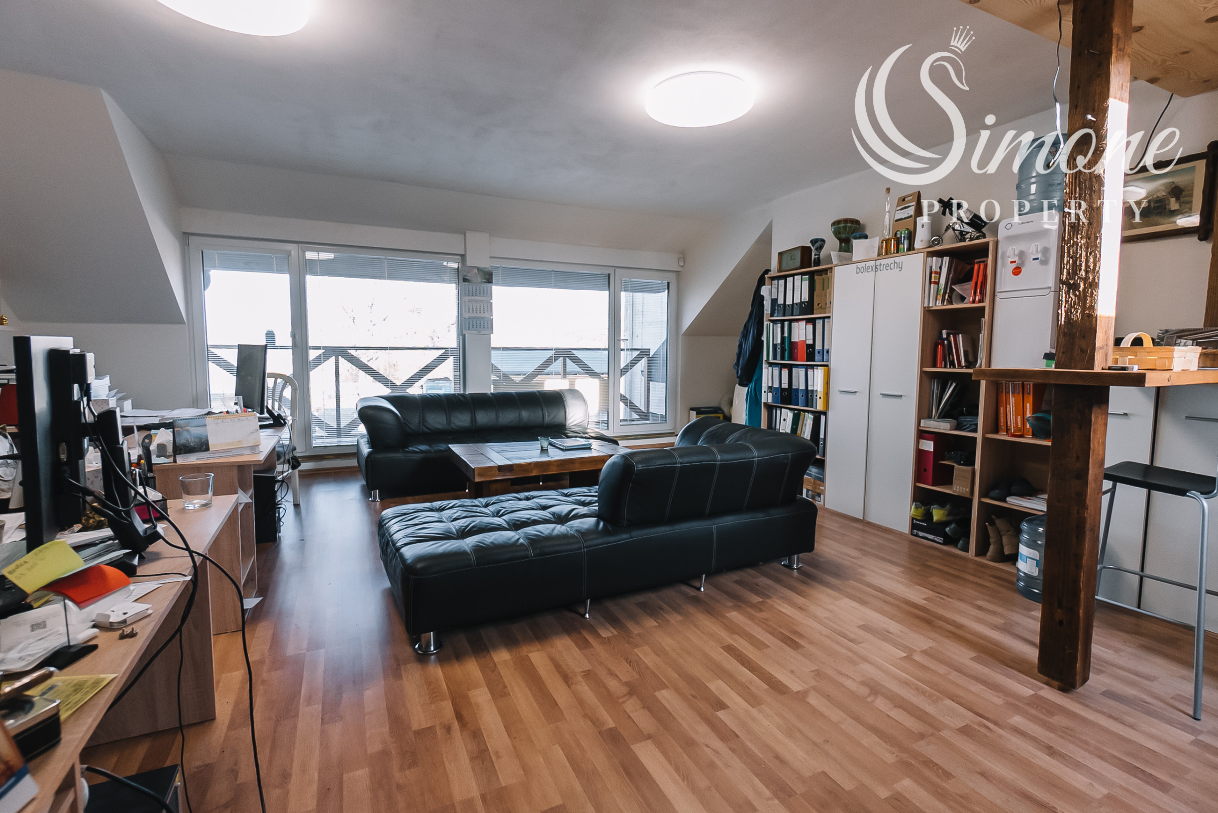 - Podkrovie: Priestranná kancelária, kuchynka, WC a balkón.